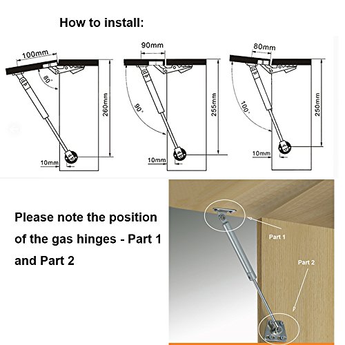 - フォース:100 N / 22.5lb(支柱);長さ:(穴の中心に穴の中心):10.6インチ;キャビネットに強すぎる場合は、どうぞキャビネットの中の1つのスプリング