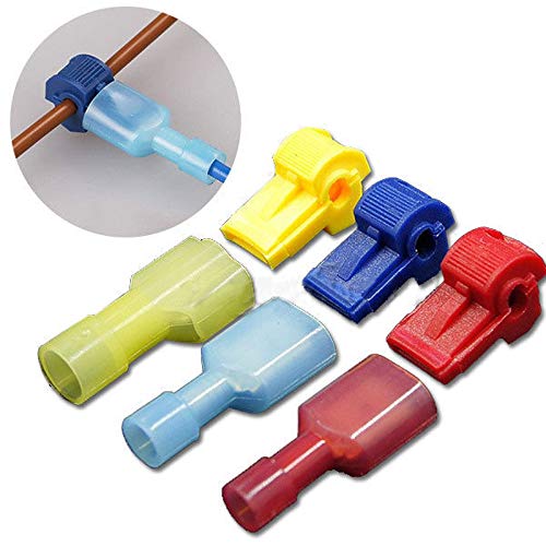 100/10ピース電線圧着端子クイックスプライスケーブルスペードコネクタキットセット0.3-1.0mm2/1.0-2.5mm2/4.0平方ミリメートル-Blue, 100pcs