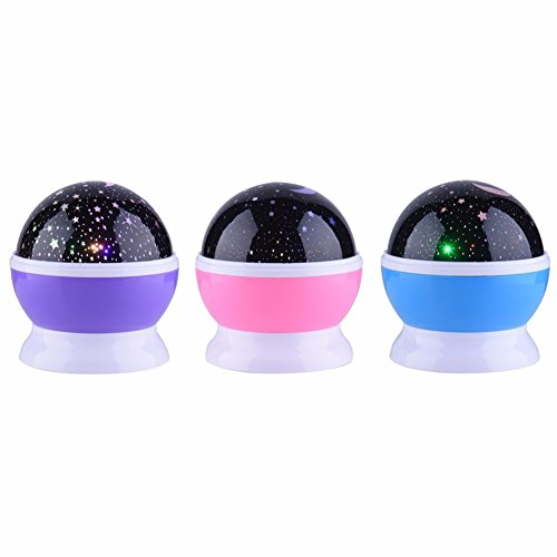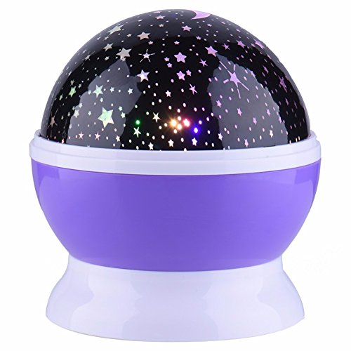 360度ロマンチックルーム太陽スター照明ランプ4 led回転コスモススタープロジェクター夜ライト星空ムーンスカイ-Purple