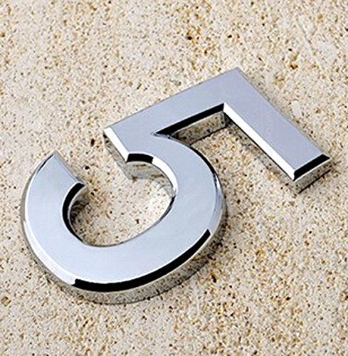 1ピースクロームシヴァーハウスドア車アドレス番号桁数字板プラークサインサイズ部屋ゲートバッジステッカー手紙レタリング-Number 5