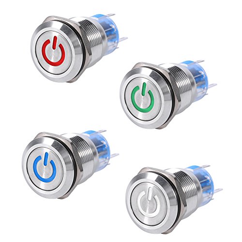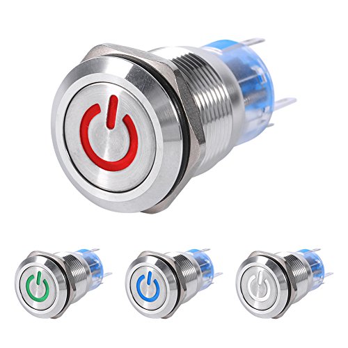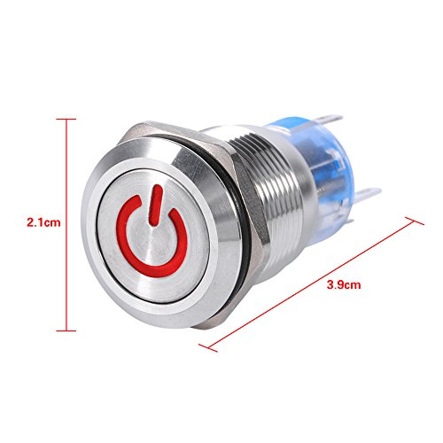 19ミリメートル12ボルトled防水ステンレス自己ラッチプッシュボタン電源スイッチ-White