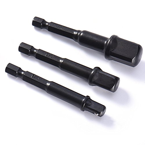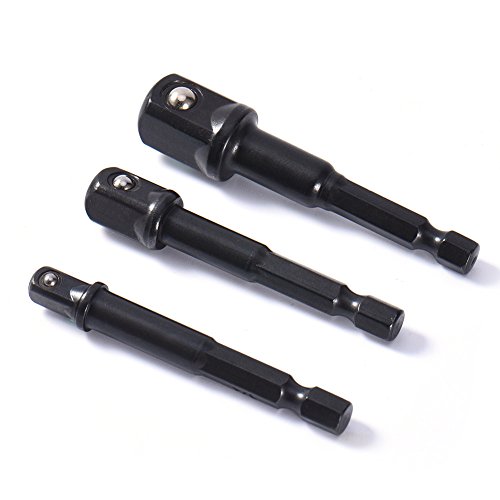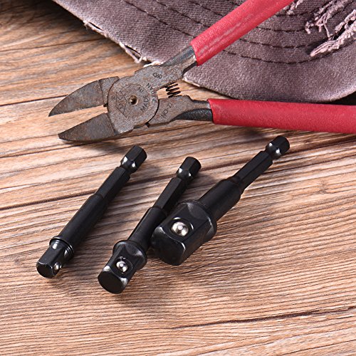 3ピース/セットクロームバナジウム鋼六角シャンク鋼黒ソケットアダプタに1/4 '3/8' 1/2 '延長ドリルビットバー電源ツール