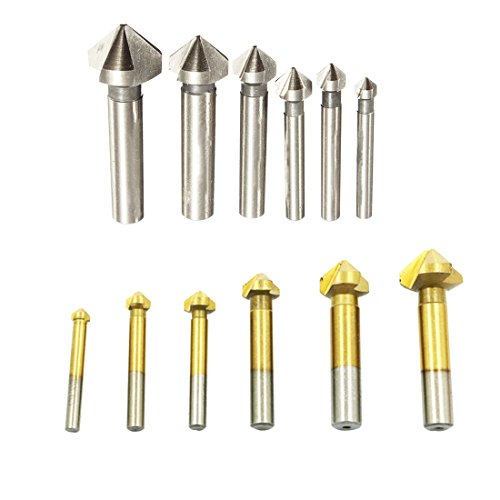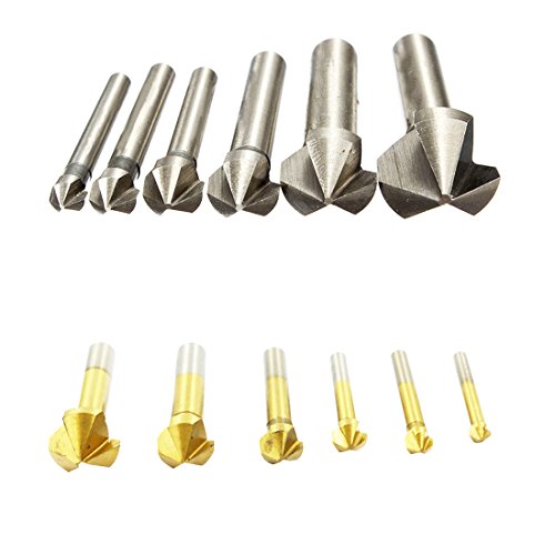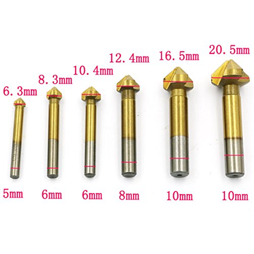 6ピース3フルートチタン面取り面取りエンドミルカッタービット皿ドリルビット90度皿ドリルビットカウンタシンク-Titanium