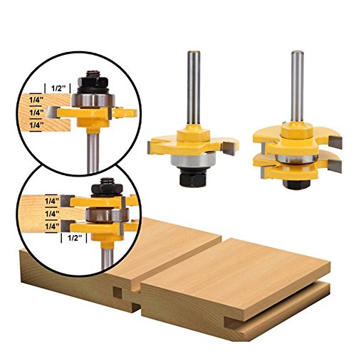新しい2ピース木材フライスカッター舌&溝ルータービット3/4在庫1/4 "シャンク3歯t-形状フライスカッター木工ツール