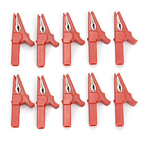 10ピース赤絶縁ワニクリッププラスチックワニ口クリップテストプローブリードクロコダイルクランプ55ミリメートル