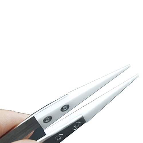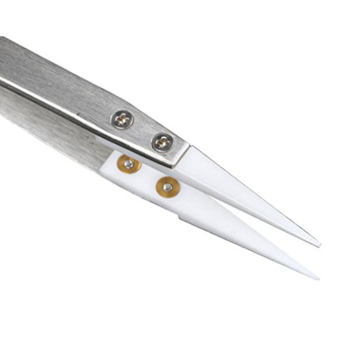 1ピース帯電防止ステンレス鋼セラミックピンセット耐熱非導電性セラミック尖った先端diyツール