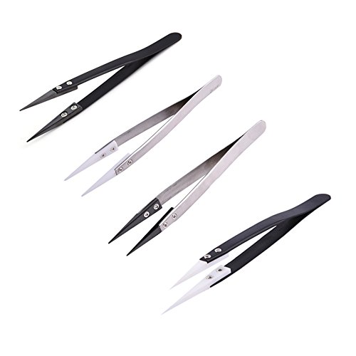 4 ttpe耐熱ステンレス鋼セラミック帯電防止ピンセットヘッド尖った先端用コイルdiyツール-C