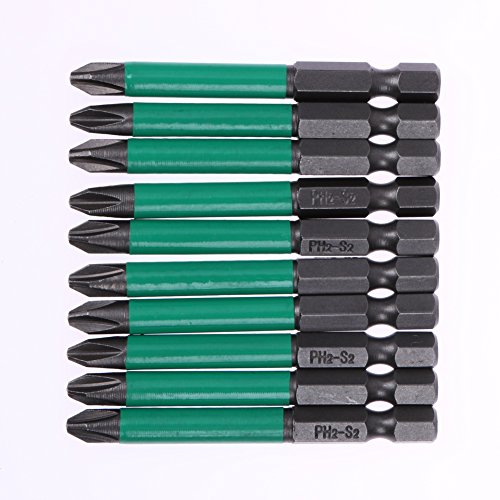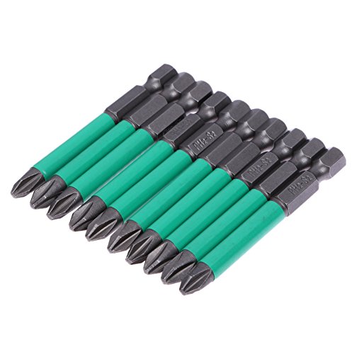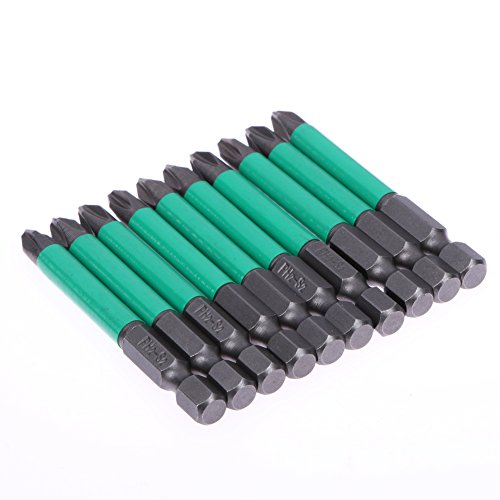 10ピース非アンチスリップ電動ドライバービット1/4六角シャンク65ミリメートル片面ドライバー磁気フィリップスヘッドネジドライバビット