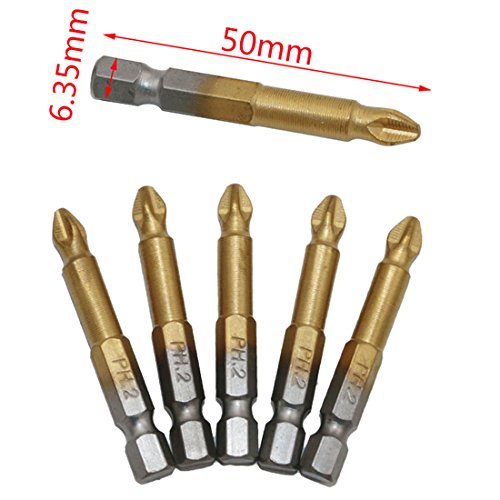 高品質5ピースアンチスリップ電動ドライバービット片面磁気六角シャンクph2 50ミリメートル