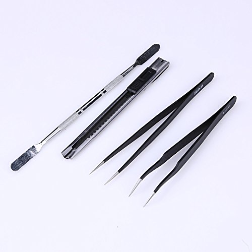 - パッケージ内容: 1 ×カッター 1 ×メタル双頭クローバ 1 ×イエロークローバ 2 ×ブループラスチッククローバ 1 × 3フォーク青クローバ 1 ×ブロッサム-フォームクローバ 2 ×ブルー帯電防止クローバ 1 ×容量クローバ 1 ×ブラック双頭クローバ 1 ×尖った帯電防止ピンセット 1 ×肘帯電防止ピンセット 3 ×三角形ワイパーブレード