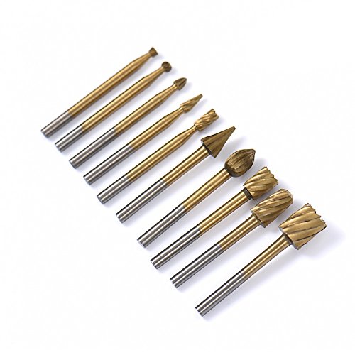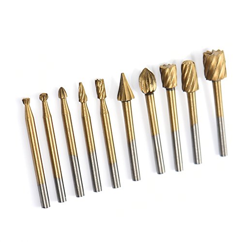 高品質10ピース/セットシャンクhss titaniumルーティングロータリーフライスドリルグラインダーカッター木工彫刻カッターツール