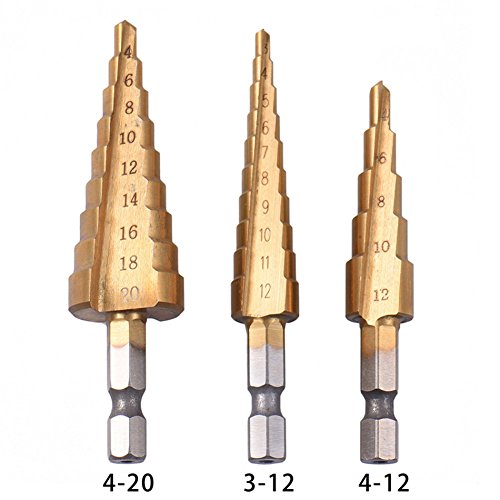 3ピース/セットtitaniumステップドリルビットhss工具高速度鋼穴カッター木材金属掘削3-12ミリメートル4?12ミリメートル4?20ミリメートル