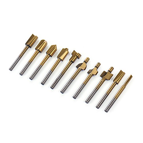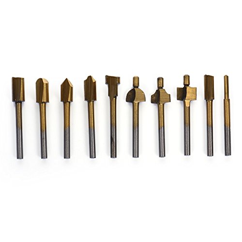 10ピース/セット1/8 "3ミリメートルhss titaniumコーティングされた木工ルータービット木材カッターフライスfitsロータリーツールセット