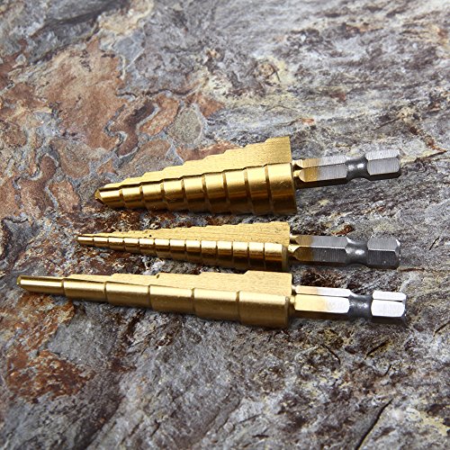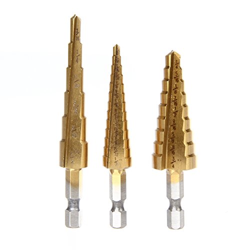 新しい高品質1セット3ピースクイックチェンジ1/4 "六角シャンク大きいtitanium coated stepドリルビットセット
