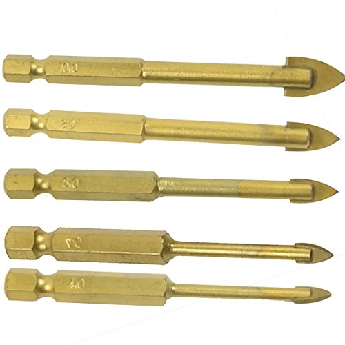5ピースチタンコーティングされたガラスドリルビットセット3ミリメートル4ミリメートル6ミリメートル8ミリメートル10ミリメートルで1/4 "六角シャンクガラス穴オープナーカッターセラミックタイル大理石