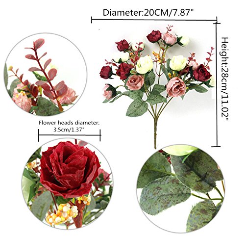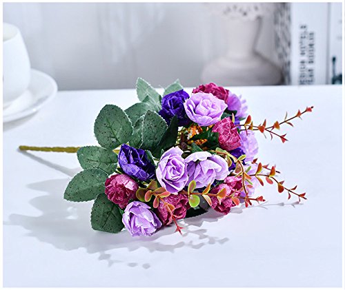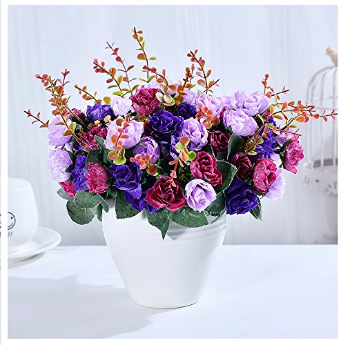 21ヘッド/ブーケシルクローズヨーロッパスタイル造花高品質花束フェイク花結婚式ホームパーティーの装飾-紫色