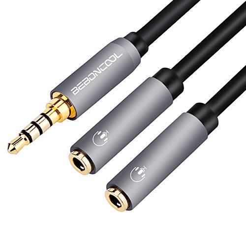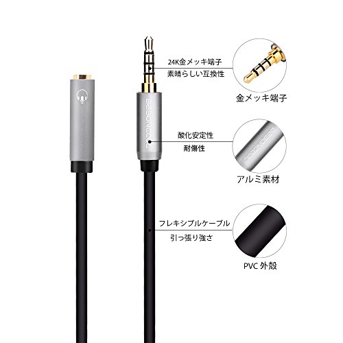 カラオケ線 BEBONCOOL 3.5mm 4極 オス-メス×2 2分配 ケーブル ステレオ ミニ プラグ ケーブル オーディオの出力とイヤホンのMIC機能を支持 (グレー)