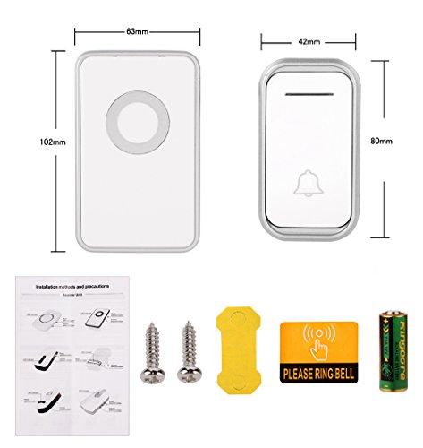 - 【音量3段階調節・38曲選択可】このワイヤレスチャイムは38種類の音楽を含ます,音量が25db~80dbまで3段階で調節可能、いろんな環境と要求を満足できます。発信機を押して、受信機はお知らせに音声で鳴りながらLEDライトも光り、わかりやすいです。