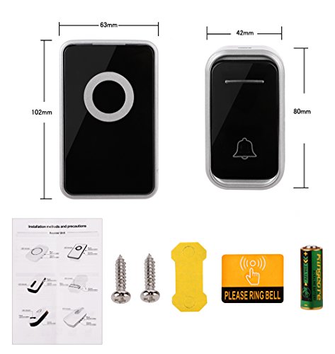 - 【音量3段階調節・38曲選択可】このワイヤレスチャイムは38種類の音楽を含ます,音量が25db~80dbまで3段階で調節可能、いろんな環境と要求を満足できます。発信機を押して、受信機はお知らせに音声で鳴りながらLEDライトも光り、わかりやすいです。