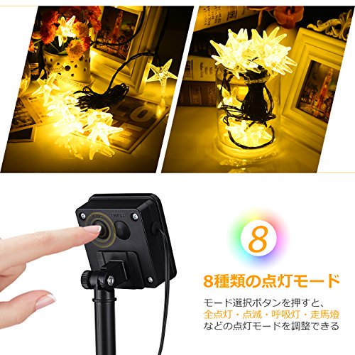 Qtopイルミネーションライト ソーラー充電式 20led電球 4.8m ストリングライト 装飾ライト フェアリーライト 8点灯モード 電球色 IP64防水 ledガーデンライト 電飾 飾り クリスマス・ツリー/パーティー/ベッドルーム/アウトドア/結婚式/庭対応