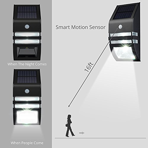 Qtuo ソーラーライト LED壁掛けライト 人感センサー搭載 高輝度LED ガーデンライト 公園/広場/ベランダ/玄関口に適用 電気代不要