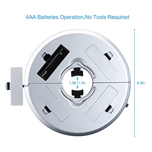 - Oの字型の製品ですが、ボタンを押すと、半円を開き、ガーデンパラソルやテントタープの支柱上部に 設置することができます。非常に便利です。