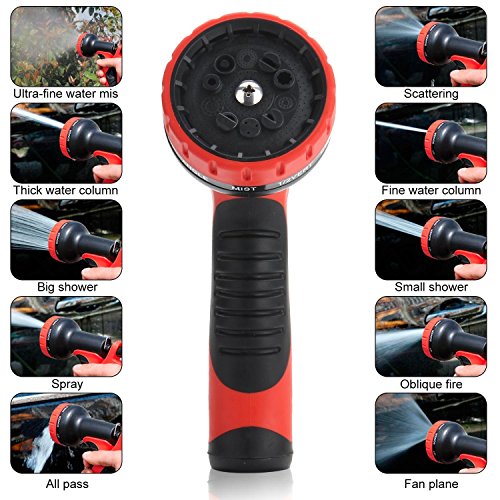 - 10パターン散水ノズル:10種類の水形を出せるマルチスプレーノズル付き、水量を調節できるレバー付いています、ノズル最先端を回りして水形を変わる、様々な用途に合わせて使い分けできて便利です。