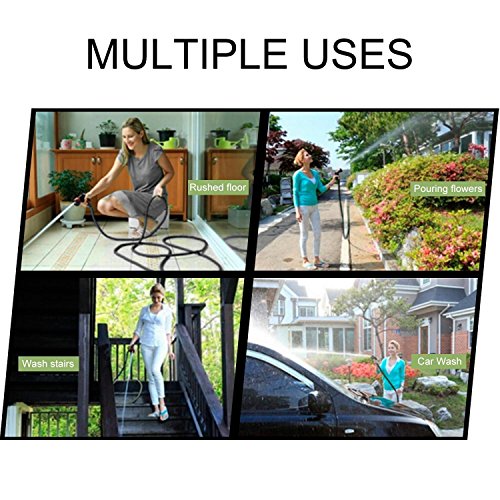 - 伸縮性:水が通った後、ホースは現有の5Mから15まで延長でき、使用した後に、放水したホースは自動的に5Mに 縮みます。