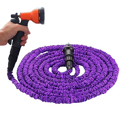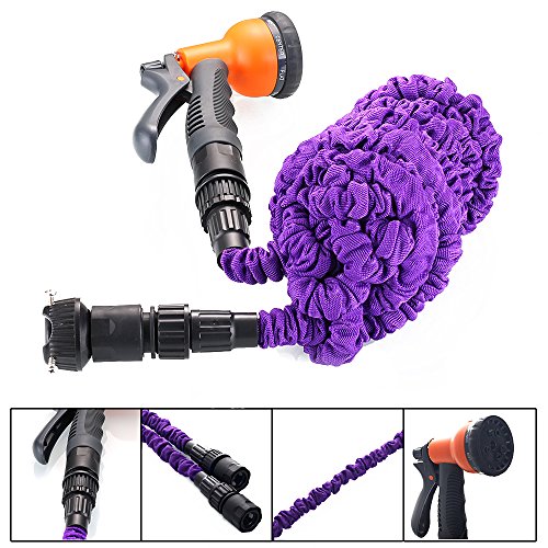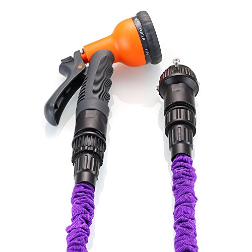 RAKU(ラク)5m~15m 伸びるホース 8パターン散水ノズル パープル 「日本語説明書付き」