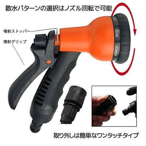 - ハ種類の水形を出せるマルチスプレーノズル付き!水量を調節できるレバー付いています、ノズル最先端を回りして水形を変わる、様々な用途に合わせて使い分けできて便利です。