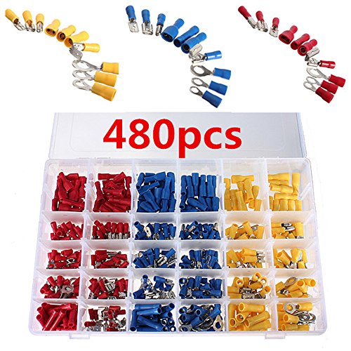 RAKUKI 防水型 絶縁圧着端子セット絶縁キャップセット 被覆 端子 スプライスキット 各サイズ 絶縁被覆つき 赤青黄 480セット