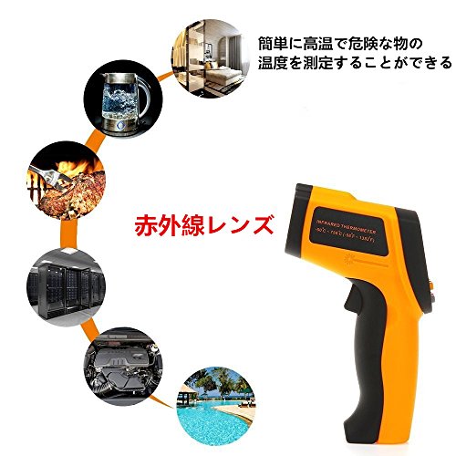 - パッケージ内容:赤外線放射温度計、乾電池付き、取扱説明書、12ケ月保証