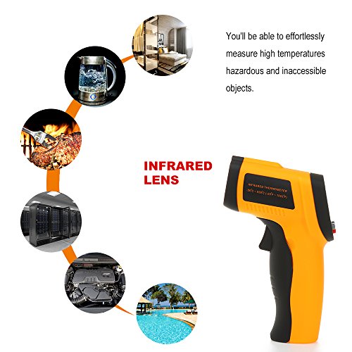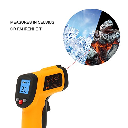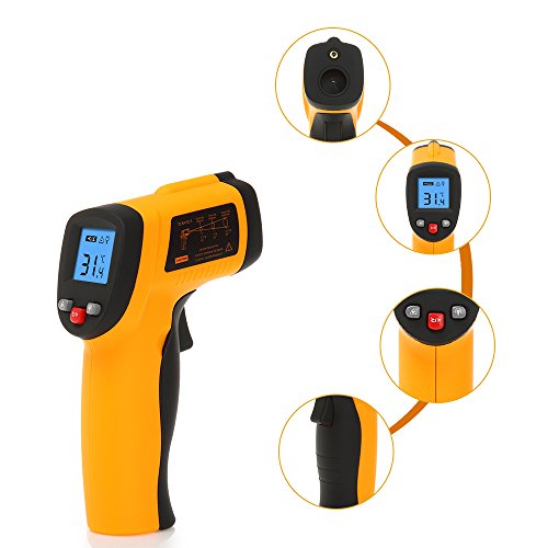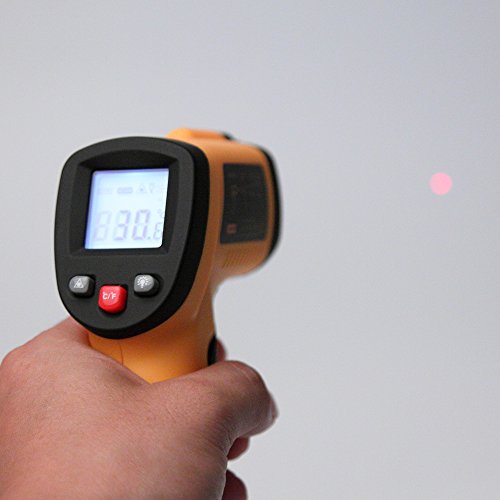 - 赤外線温度計はバックライト付きの見やすいLCDです。デジタル液晶ディスプレイは、暗いところでも読み取ります