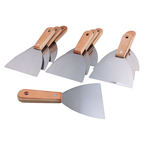 RdExP Puttyツールステンレススチールブレードと木製ハンドル5インチPuttyフィラーナイフ木製&シルバーカラーのセット10