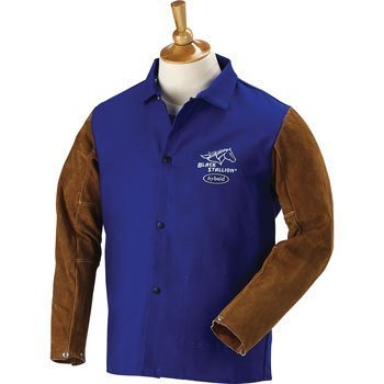 BLACK STALLION Hybrid 9 oz. FR and Cowhide Welding Coat - 30" Royal Blue/Brown - XL [並行輸入品]