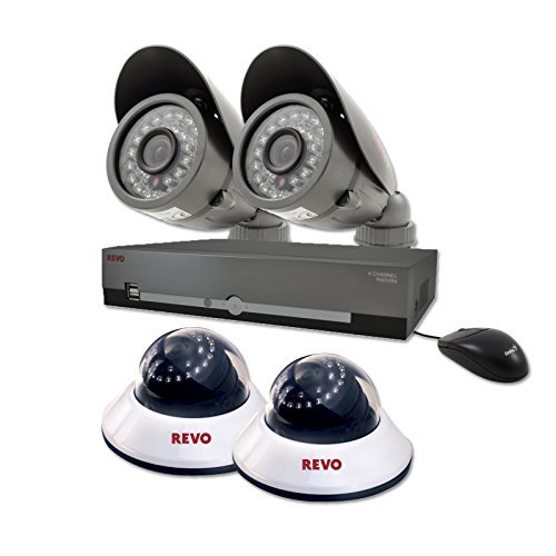 This system features a DVR with a 500GB hard drive for storage and H.264 video compression with 4 super-high resolution cameras; 2 indoor dome cameras and 2 bullet cameras built to operate in both indoor and outdoor applications. The 600TV Lines of resolution provide sharp, clear pictures. The weather resistant day/night bullet camera comes equipped with a mounting bracket, sunshield and 30 infrared LEDs providing powerful illumination of up to 80 feet in total darkness. The indoor dome also includes 30 infrared LEDs allowing it to see 80 feet in total darkness as well. Both camera types come complete with an all-in-one video/power/data/audio 60 ft. RJ12 cable and a 3.6mm lens. You'll never have to worry about how to get power to your cameras with the Revo DVR plug-and-play security system. Just connect them to the back of the DVR and you are ready! This professional cost effective and expandable system has an easy set-up wizard and is also fully networkable allowing you to remote view both live and recorded video over the internet, home/business network, or via you mobile phone. Advanced. Intelligent. Video Surveillance. REVO!