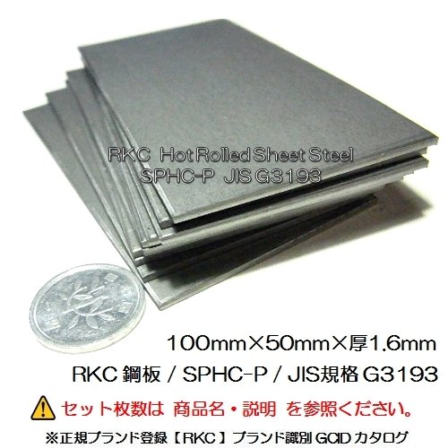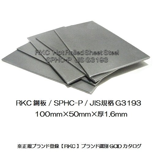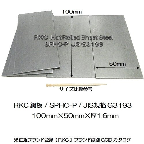 RKC 鋼板 100 × 50mm × 厚 1.6mm 5枚 SPHC-P JIS規格品 109E