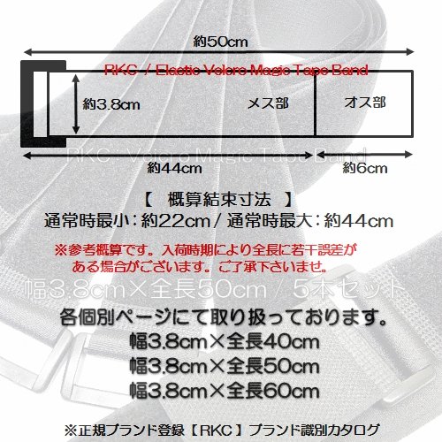 【 RKC 】 固定ベルト 3.8cm × 50cm (5本) 黒 : 042GA2