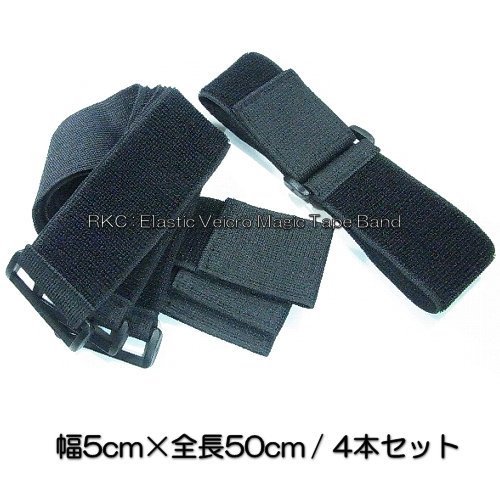 RKC 伸縮型 固定ベルト 5cm × 50cm (4本) 黒 042HN4