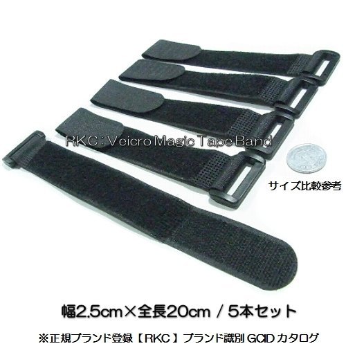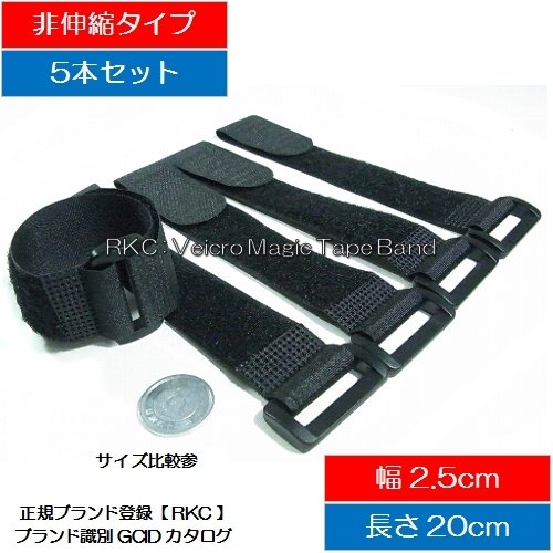RKC 固定ベルト 2.5cm × 20cm 5本 黒 040A6-1