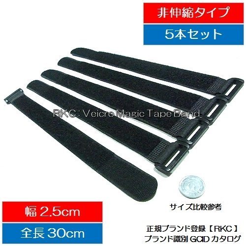 RKC 固定ベルト 2.5cm × 30cm 5本 黒 040A7-1