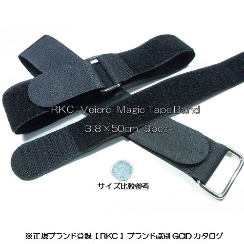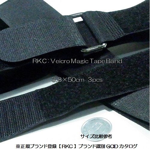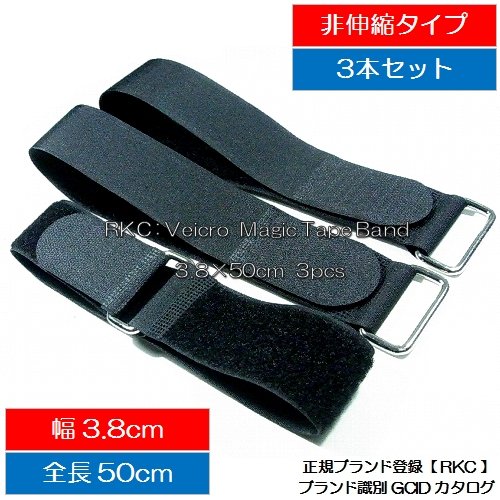 RKC 3.8cm × 50cm 固定ベルト 金属バックル付 3本 黒 160B-5