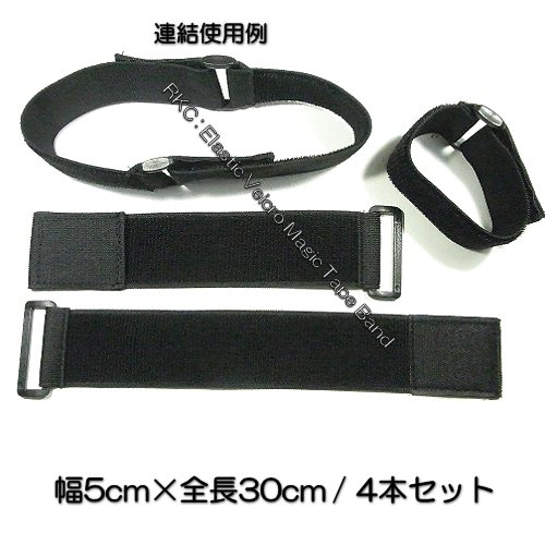 【 RKC 】 伸縮型 固定ベルト 5cm × 30cm (4本) 黒 : 042HD