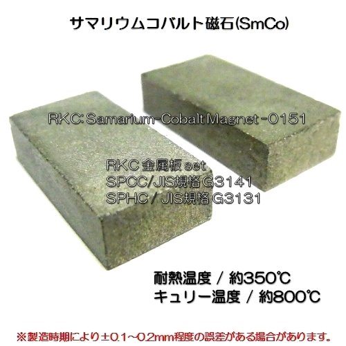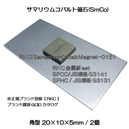 RKC サマリウムコバルト磁石 耐熱 角型 20×10×5mm 2個 JIS規格鋼板セット商品 151
