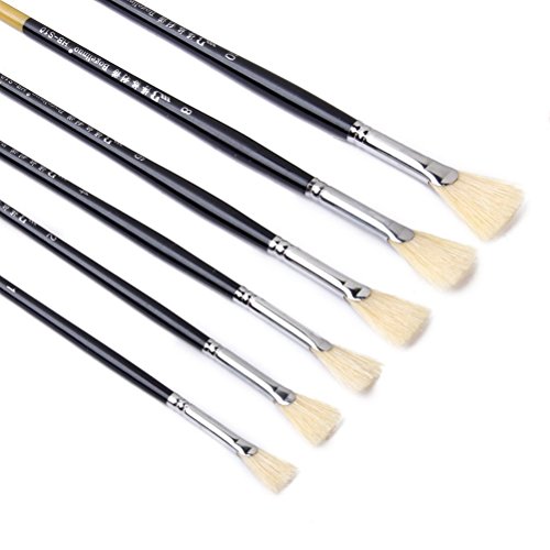 6 * 木製アーティスト ファン ブラシはオイル ペイント アクリル絵の具のセット