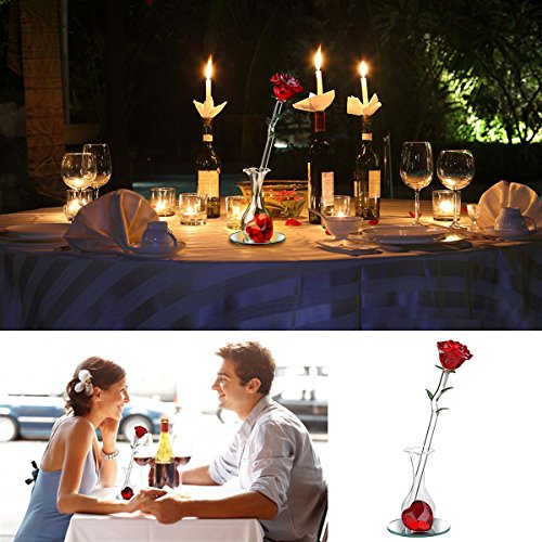 Rosenice Valentines Day Gifts for Her Foreverローズ、クリスタルローズフラワーinガラス花瓶とハート形状装飾
