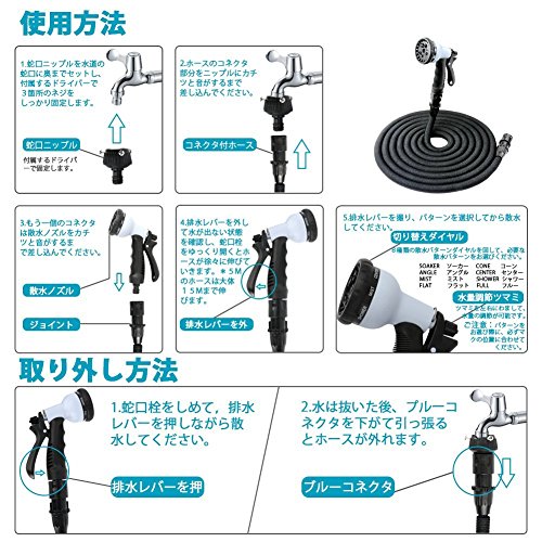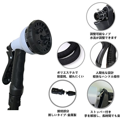 - ★耐久性:取付口の接続部分も金属製に変更して、ホースの漏水と破れる、抜けるなどの問題を防止することができます。内部と外部の素材を改善し、伸縮性、強度と耐圧力などを向上させることができました。