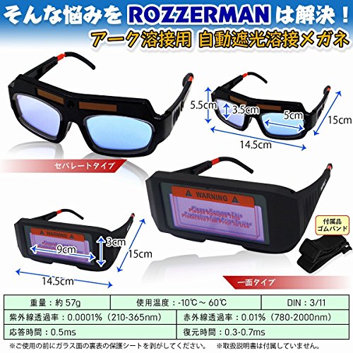 - ■アーク溶接用・ROZZERMANの自動遮光溶接メガネ!電気溶接/ガスシールド溶接/アルゴン溶接/アーク溶接など様々な溶接時に使用可能です。