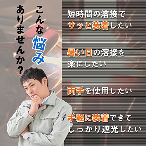 - ■サングラスタイプで簡単に装着できる溶接メガネです!付属のゴムバンドでしっかり装着することができるので、作業中に両手が自由に使えます。短時間の溶接でサッと装着できるので便利です。