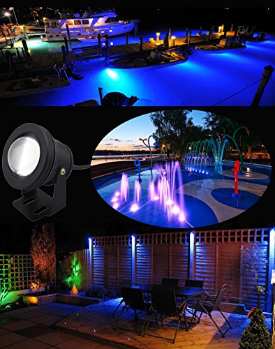 RUICAIKUN 10W DC/AC 12V 防水 RGB LED 低電圧 照明 スポットライト 屋外フラッドライト スイミングプール (ブラック)
